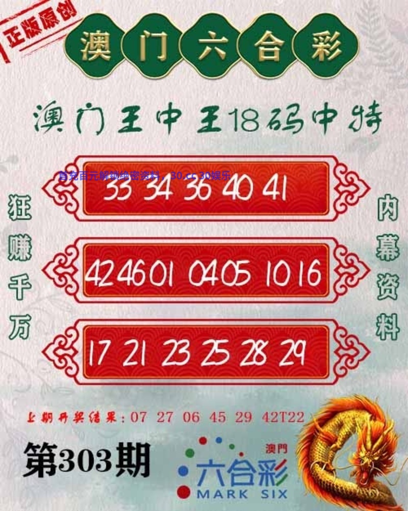 | 302期:绝杀✴️09.18.21.30.40.42✴️开:猴22中 |